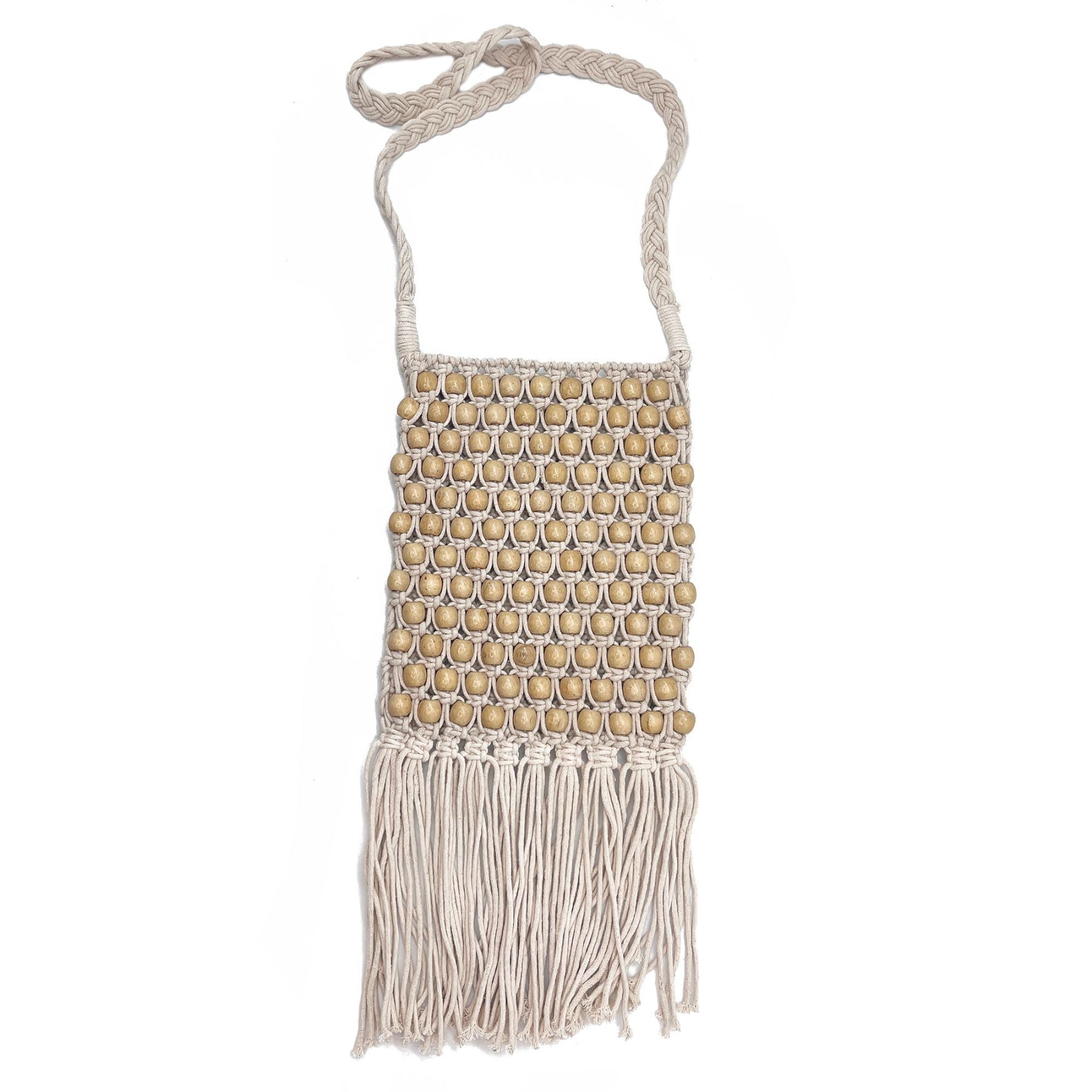 Cotton macrame sling bag with wood beads