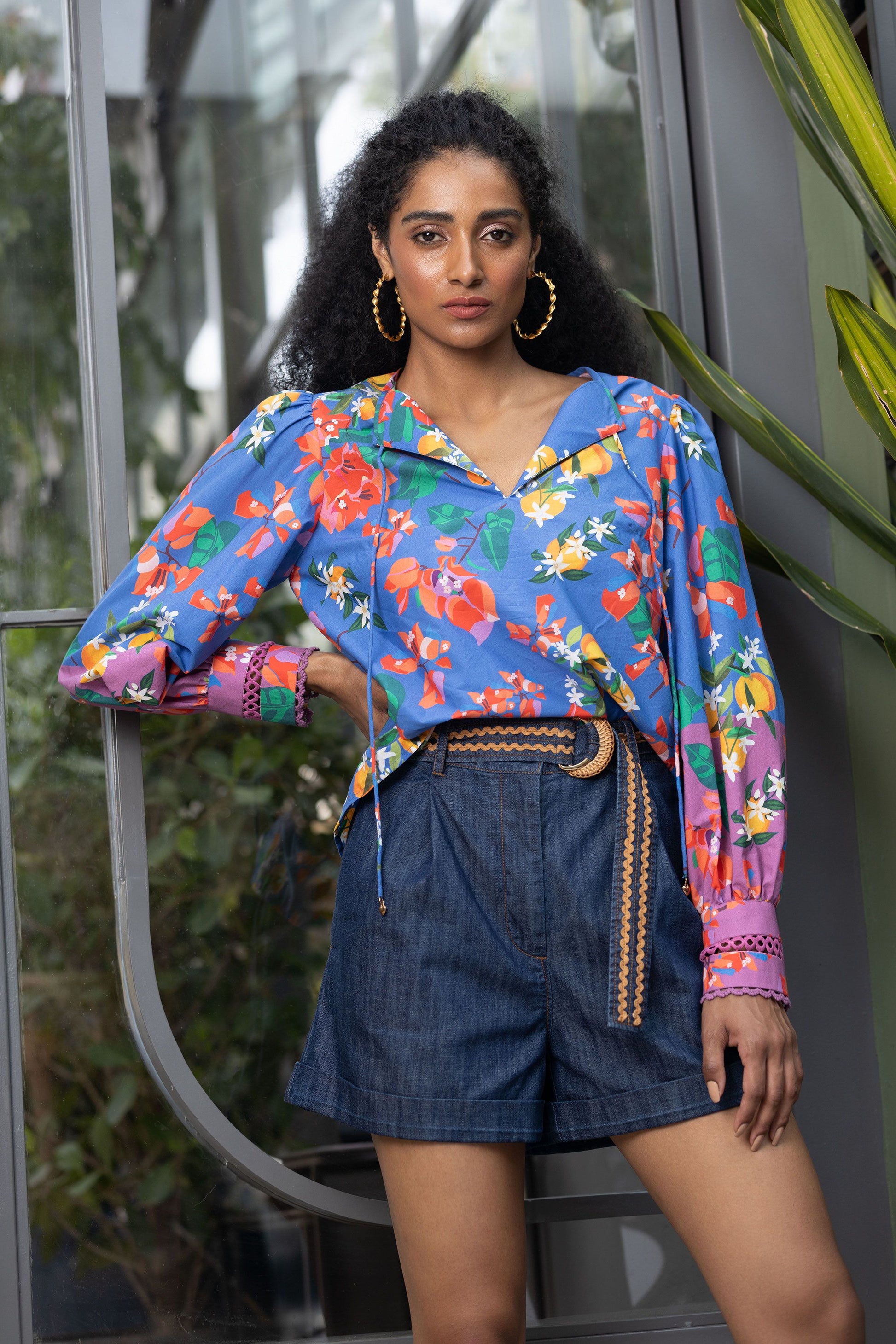 Introducing our Eva Top in Amparo Blue, featuring a bright floral print that will make you stand out in the crowd. With its playful and vibrant design, this blouse is the perfect addition to your wardrobe. Feel confident and stylish all day long!