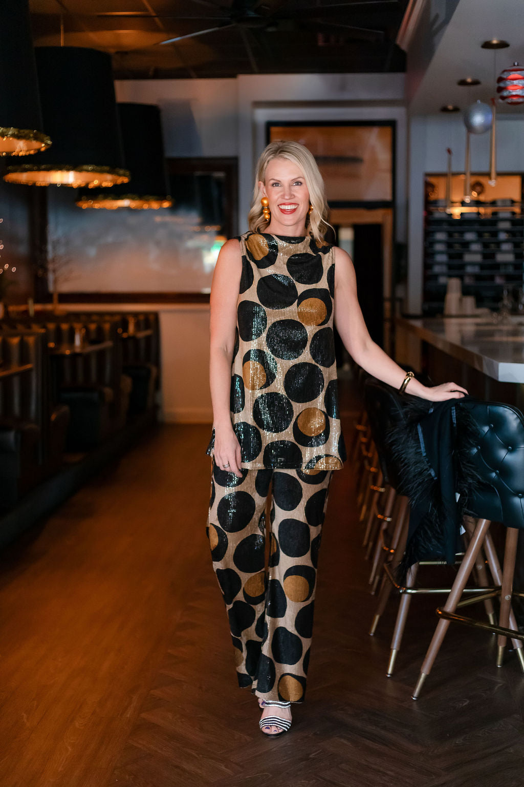 This elevated take on a casual silhouette hugs the hips and thighs, then flares below the knee for a flattering finish. The soft stretch knit is subtly dusted with mini sequins for a hint of shine. Complete with an all-around elastic waist for comfort and ease, it's a versatile option for polished dressing.