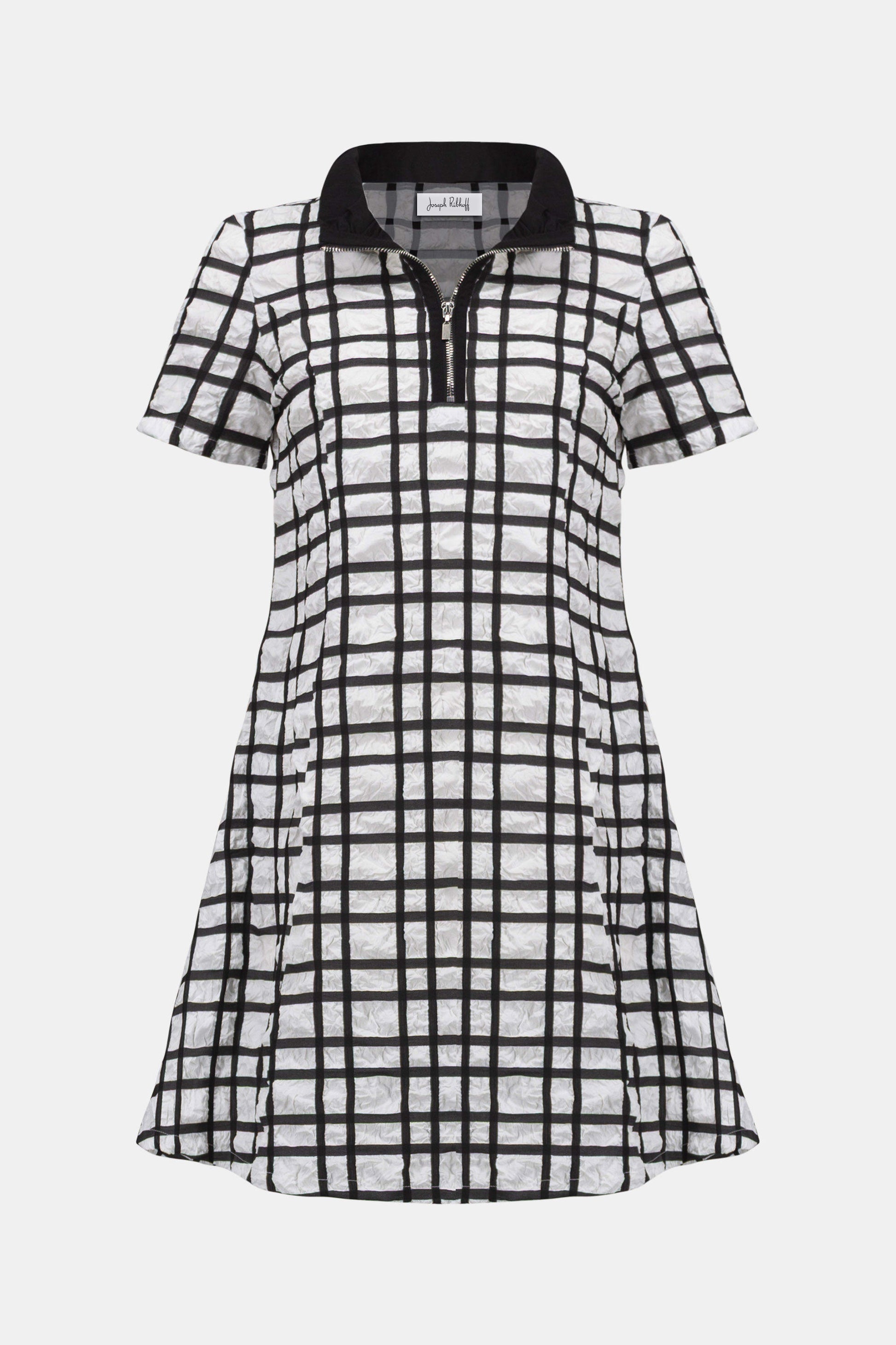This plaid bubble jacquard dress blends everyday comfort with standout structure. A memory shirred funnel collar with front zipper adds volume, while short sleeves and inseam pockets keep the look grounded.