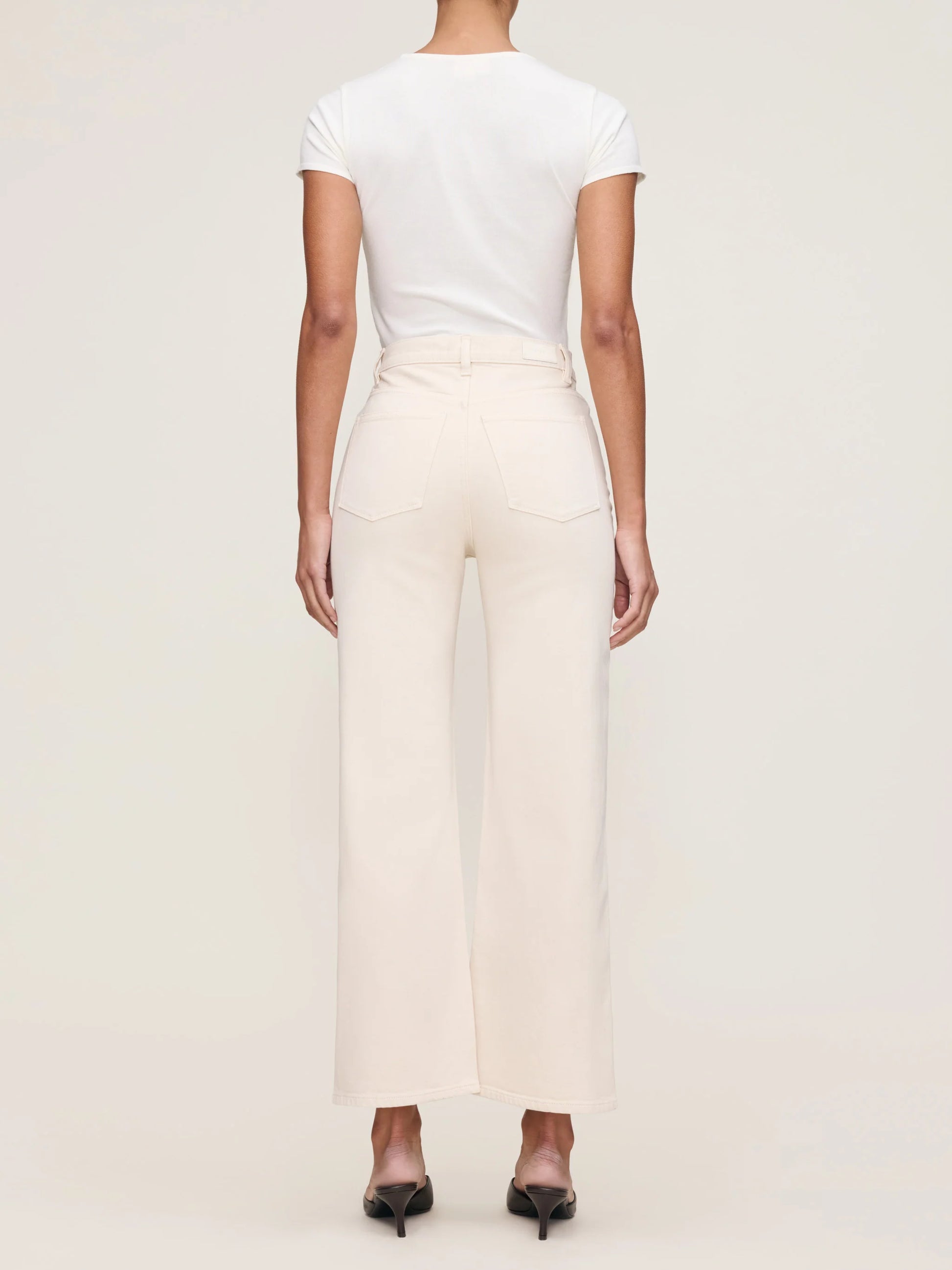 high rise refined wide leg with a 28" inseam for an easy and relaxed fit.