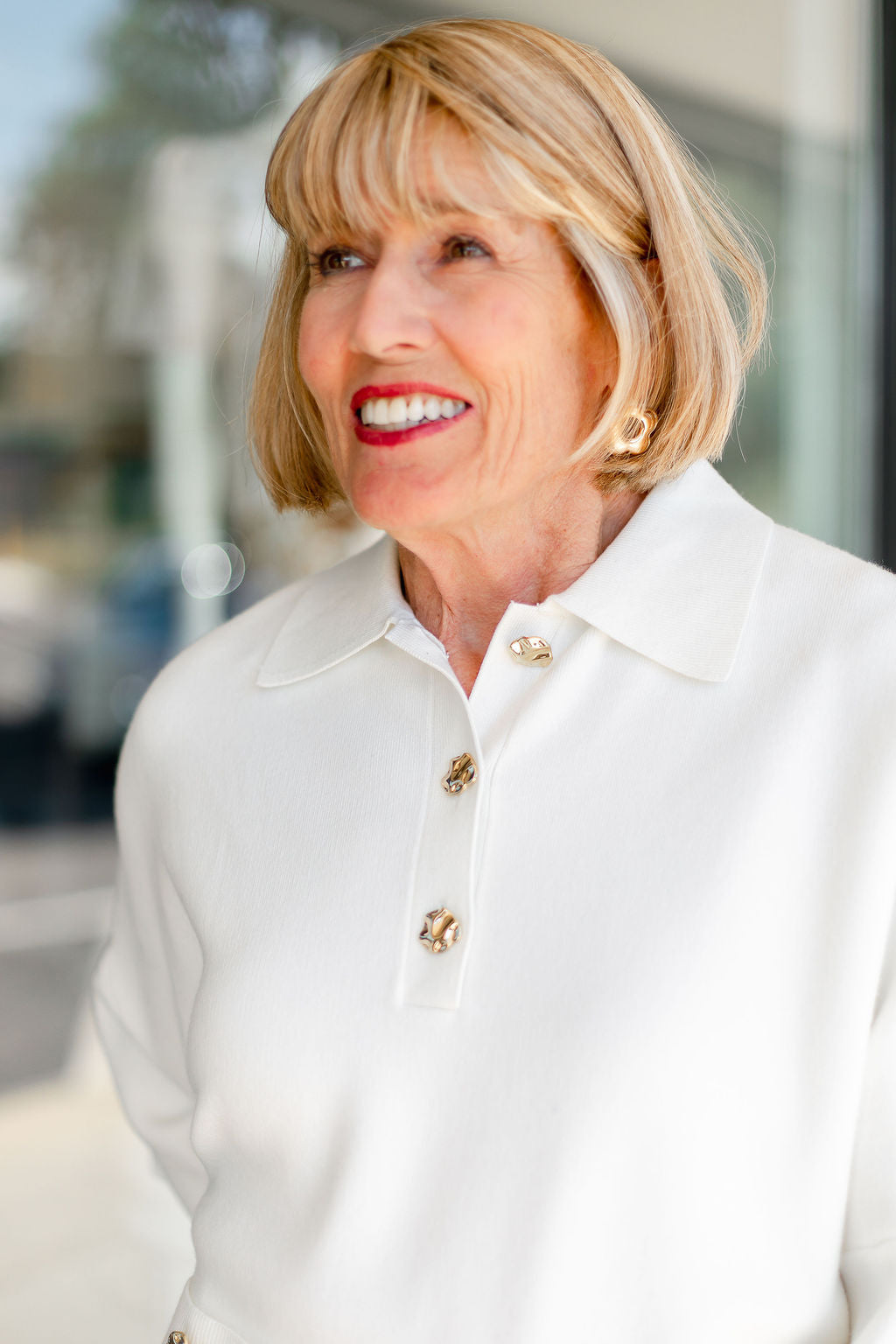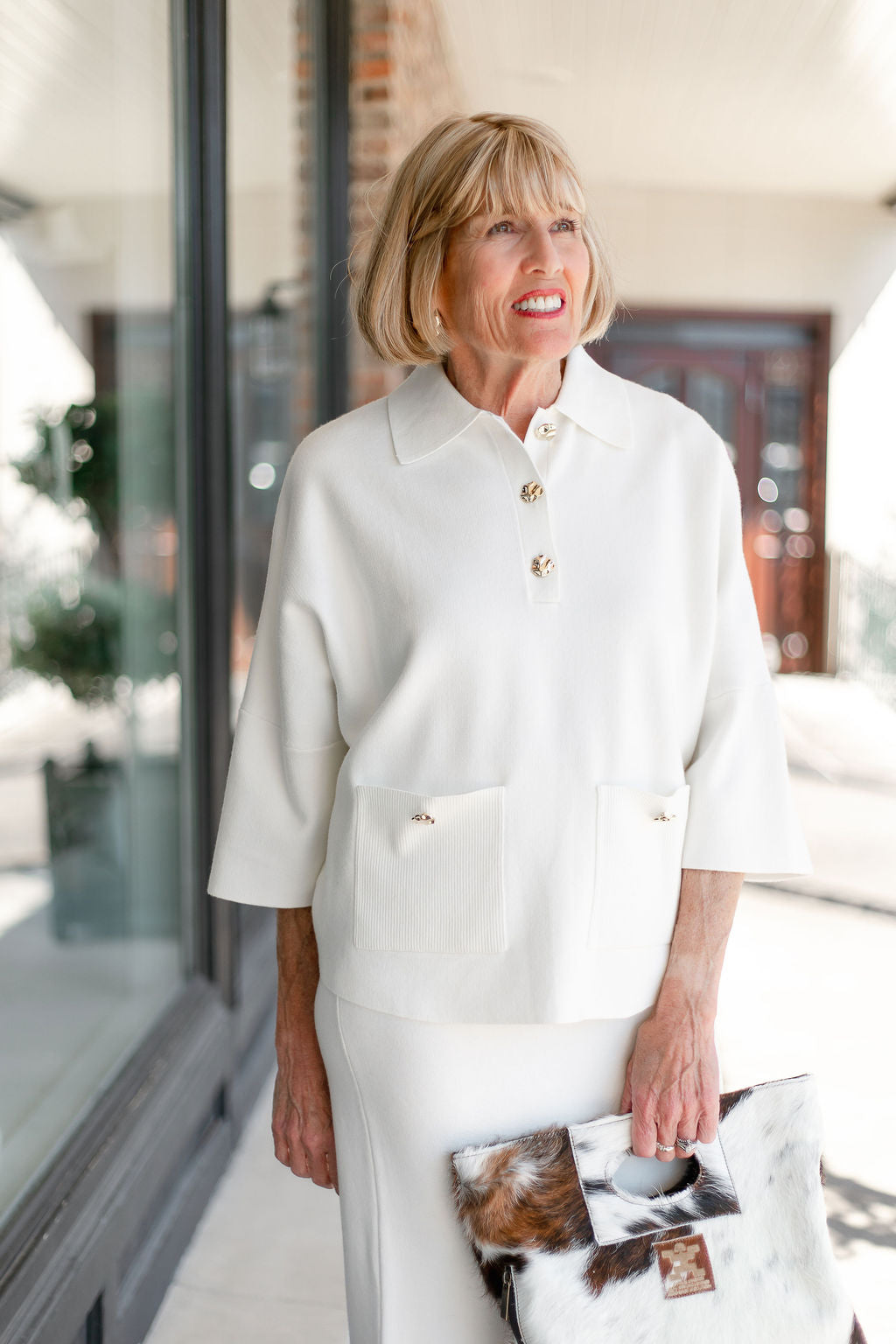 This sweater-knit pullover blends a relaxed silhouette with refined details for a casual-chic look that's anything but ordinary. Golden buttons trim the placket and embellish the front pockets, adding a touch of sophistication, while three-quarter bell sleeves complete the design with effortless, free-spirited flair.