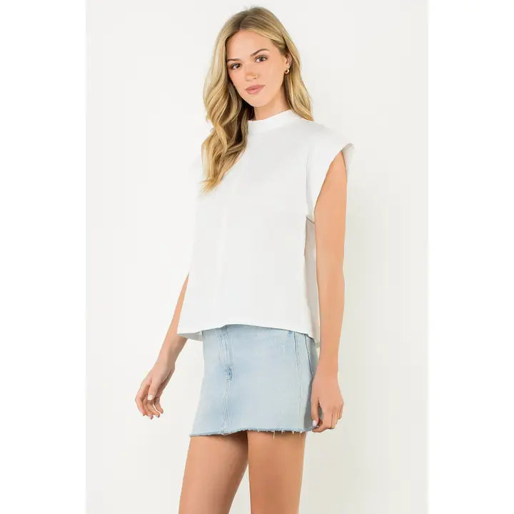 Mock Neck Quilted Sleeve Top . / Style Measurements for Size S / Designed in USA - Body Length: 24 in - Bust Width: 41 1/2 in - Sleeve Length: 2 in