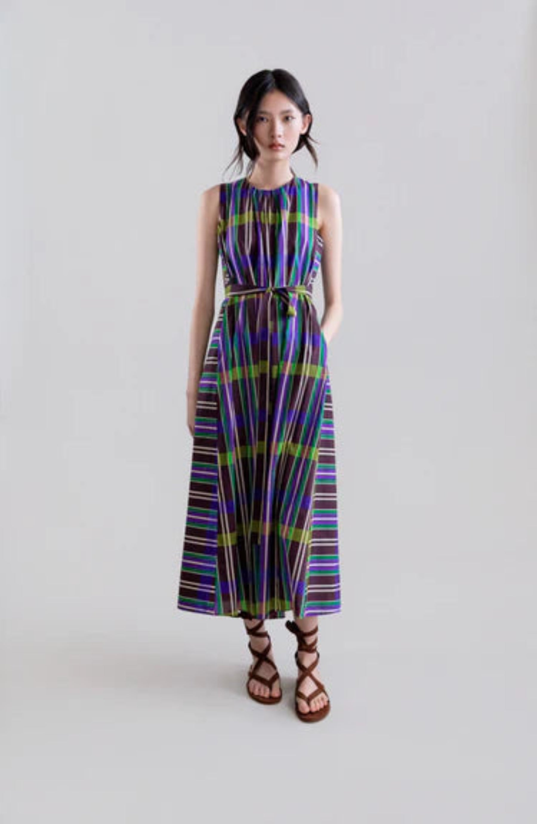 The dress includes a matching belt , allowing you to adjust the silhouette and define the waist without sacrificing the design's characteristic fullness. A piece designed for a woman seeking color, movement, and a modern, refined aesthetic.