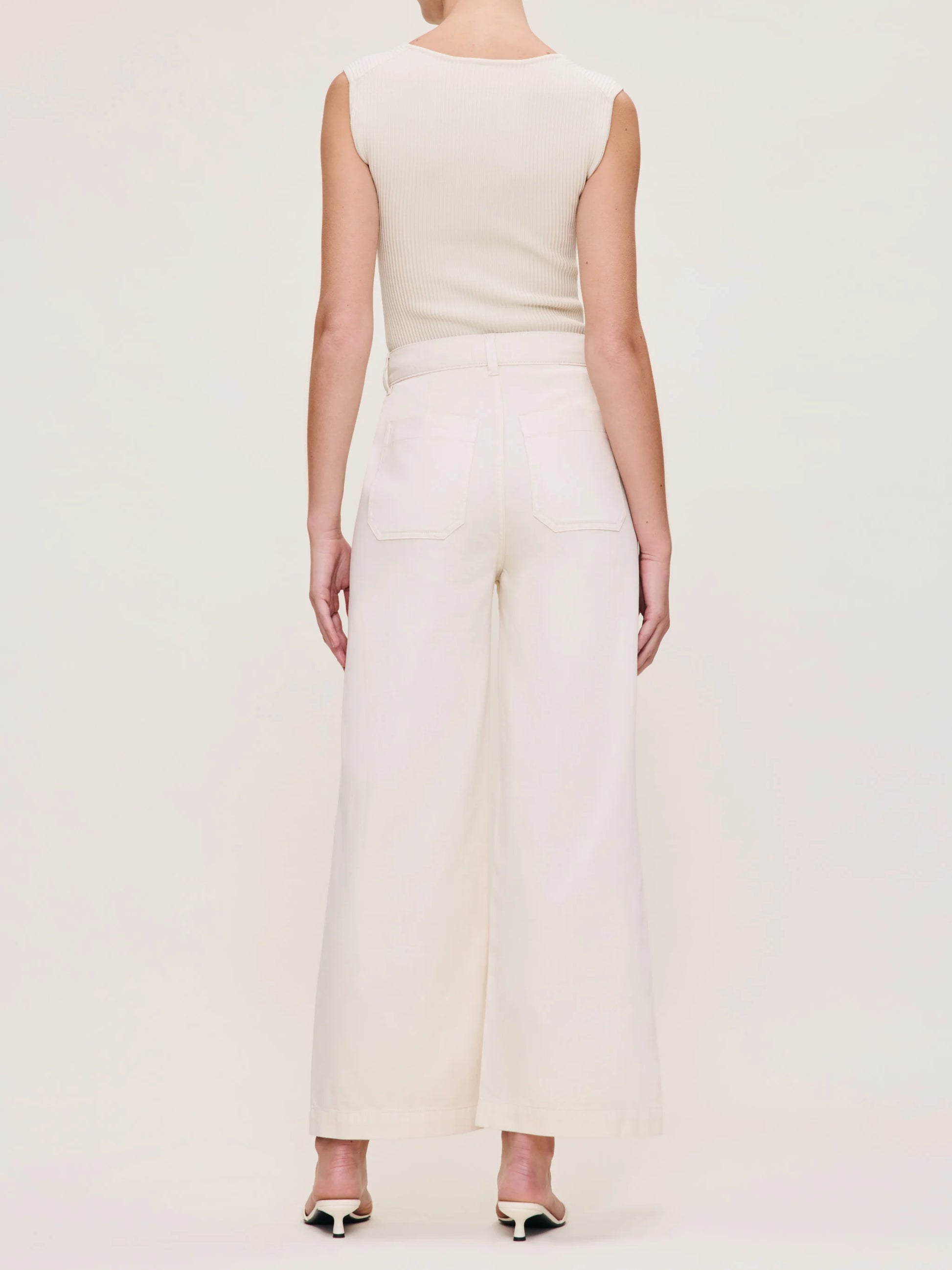 Ecru is a natural colored sculpting rib knit with clean finishing.