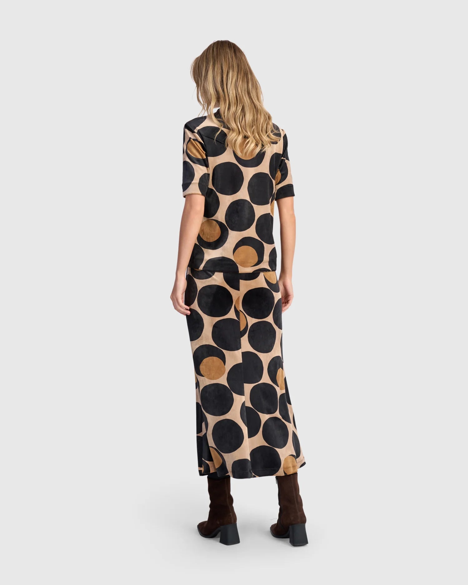 This velvet tee features a slim silhouette with soft structure and shine. The mockneck and elbow sleeves lend a modern shape, while the hip-grazing length makes it an easy match for trousers, skirts, or under layers. A refined essential with elevated texture.